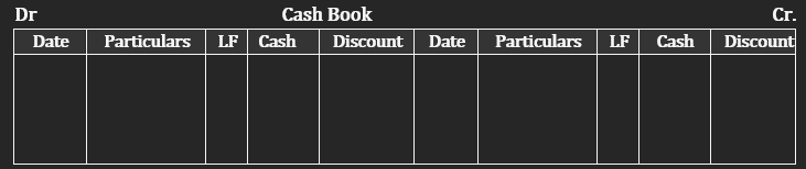- Simple Cash Book: This type of cash book consists of only one ‘Amount’ column on each side. The cash received is debited and cash paid is credited. This applies to both cash at the office and cash at the bank.